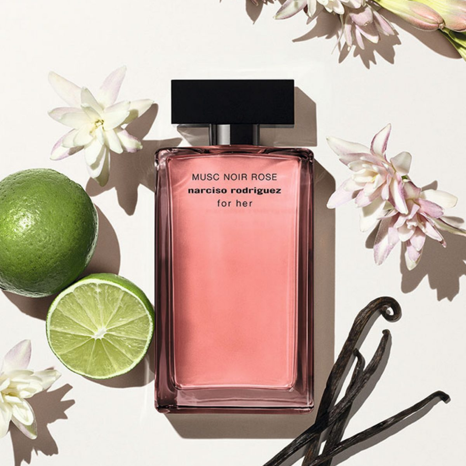 for her MUSC NOIR ROSE captures a new mood of intimacy, expressing a delicate sensuality that is all the more captivating for its subtlety. with this amber floral scent, the for her woman lays herself bare, unveiling her true self and revealing the most personal facets of her femininity. More sensual and less dark than for her MUSC NOIR, for her MUSC NOIR ROSE eau de parfum for women blooms with a voluptuous bouquet of intense tuberose. its luminous, creamy facets fuse with the signature Narciso Rodriguez heart of musc and a hint of luscious plum to create a more profound sense of intimacy.